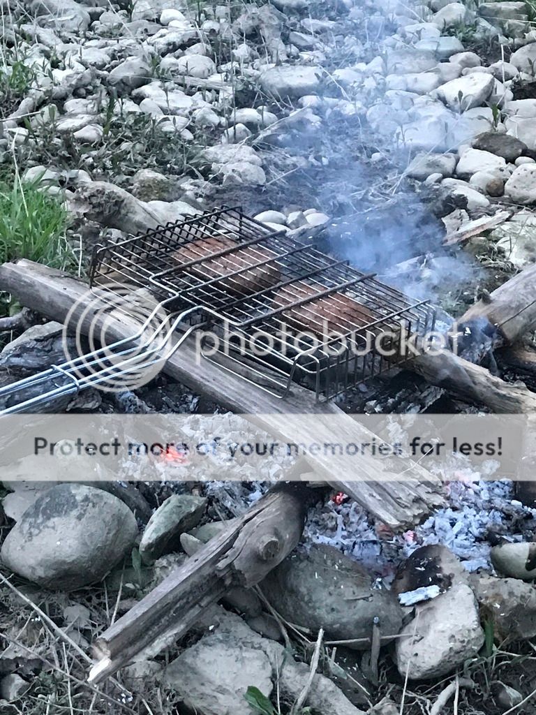 Absolutely exhausted after hanging our hammocks we settled in to a night by the fire and gourmet burgers slow cooked over glowing coals..