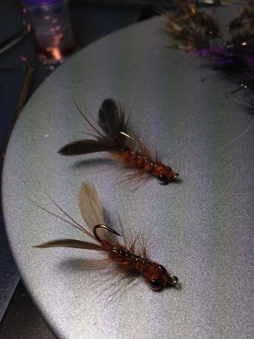 Here is an experimental craw pattern using my cat's shed fur for dubbing: